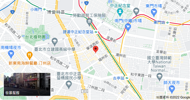 | 住所Adress | 台北市中正區南昌路一段124號11F(14階建て) |