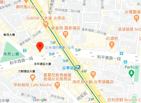 | 住所Adress | 台北市中正區和平西路一段8F(11階建て) |