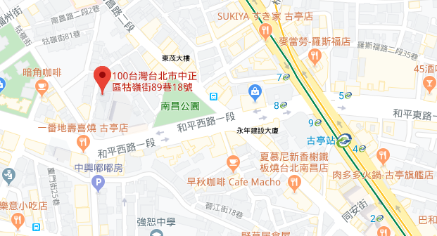 | 住所Adress | 台北市中正區祜嶺街89巷18號3F(4階建て) |