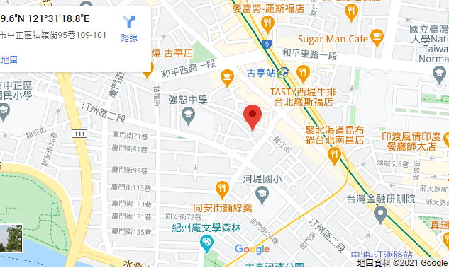 | 住所Adress | 台北市中正區南昌路二段3F(14階建て) |