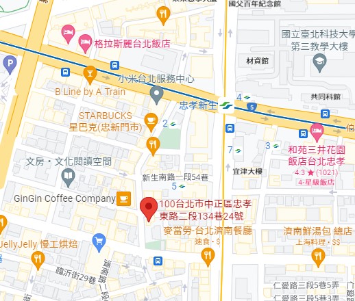 | 住所Adress | 台北市中正區忠孝東路二段134巷24號之2,2階(5階建て) |