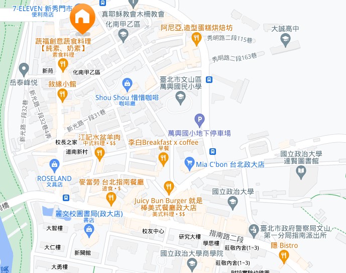 | コメントComments | ・政治大学まで徒歩5分程度の距離 ・付近に学生飲食店街、スーパー、コンビニあり ・バス路線充実、台北市内に出かけるにも便利 |